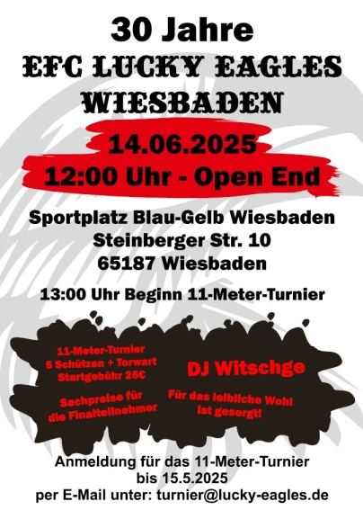 1.9.2025 - Aufnahmestopp: Aktuell nehmen wir keine neuen Mitglieder mehr auf. vergangene Termine: 21.6.2025 - Lucky Eagles interne Jubiläumsfeier 14.6.2025 - 30 Jahre Lucky Eagles
